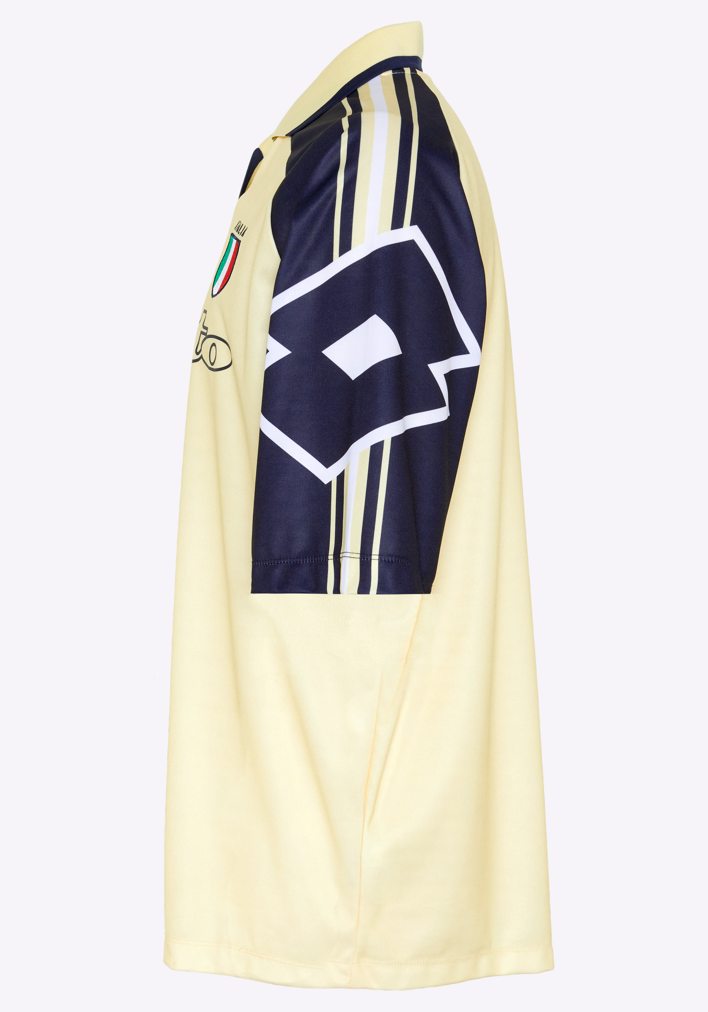 Das Lotto Calcio 93 Raglan Trikot bringt die visuelle Power der frühen 90er zurück. Inspiriert von den legendären Designs der goldenen Lotto-Jahre verbindet dieses Shirt authentischen Fußball-Style mit einem frischen, streetwear-tauglichen Look. Das hochwertige Interlock-Material sorgt für angenehmen Tragekomfort und eine saubere, kompakte Optik. Der lockere Loose Fit greift den typischen 90s-Cut auf und macht das Trikot ideal für moderne Outfits. Der Rippkragen unterstreicht den klassischen Fußball-Charakter, während die kurzen Ärmel ohne Bündchen dem Design einen cleanen, zeitgemäßen Flow geben. Besonders prägend sind die kontrastierenden Raglan-Ärmel mit integriertem Lotto-Logo an den Schultern, das große Lotto Logo auf der Brust sowie das Italia-Badge als klares Heritage-Statement. Die Farbe Pastel Yellow verleiht dem Trikot einen einzigartigen Retro-Twist und hebt es deutlich von klassischen Dark-Styles ab. Ein echtes Highlight der Calcio-93 Linie für alle, die Fußballkultur, 90s-Ästhetik und moderne Streetwear miteinander verbinden wollen.