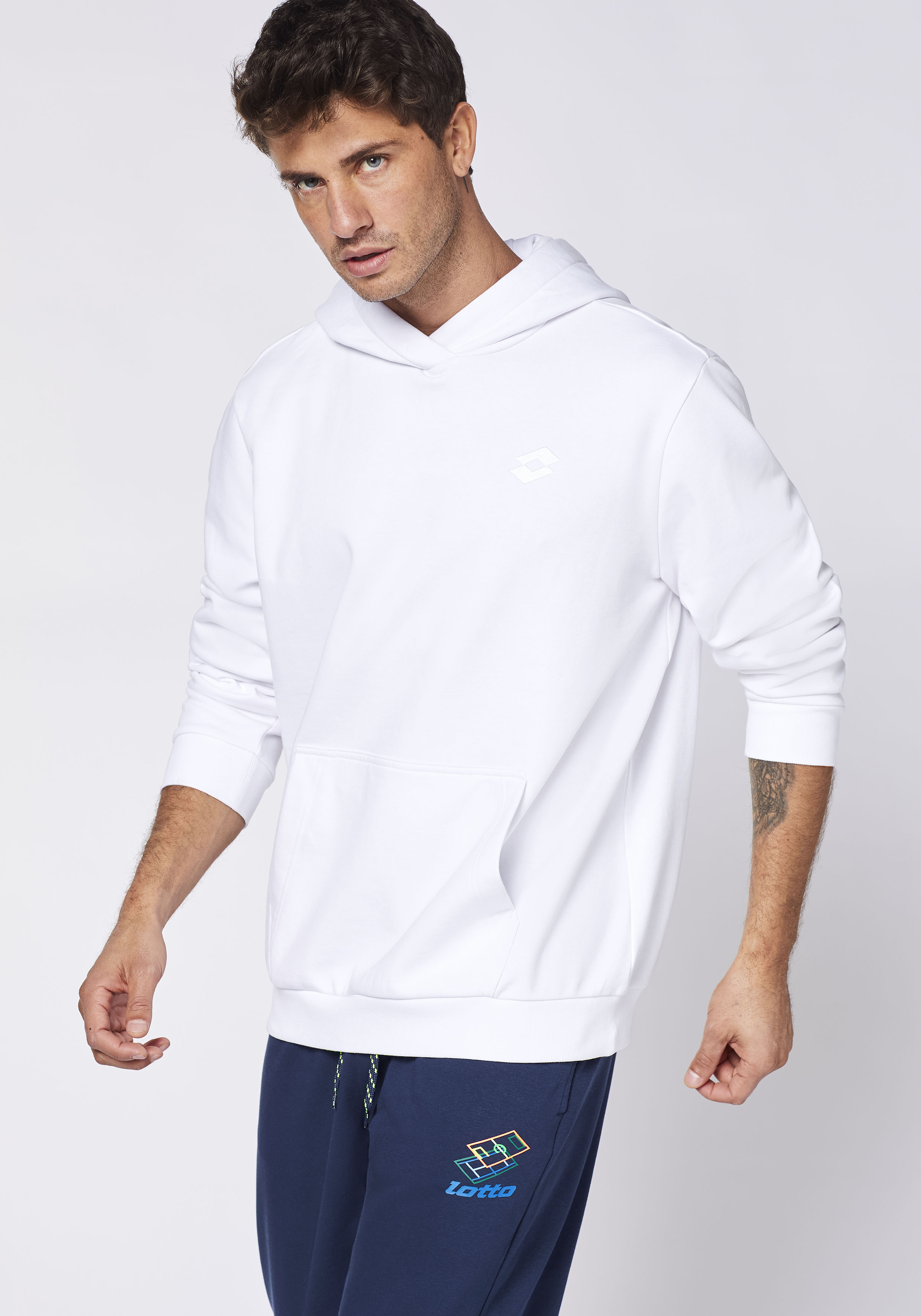 Muss man Haben! Dieses Kapuzensweatshirt für Herren von Lotto ist das perfekte Styleteil für den lässigen Casual-Look. Sehr cool ist der große Tennisplatzprint auf dem Rücken. Auch die Kapuze und die typische Kängurutasche vorn machen den Hoodie zum angenehmen Begleiter. Dank der angerauten Innenseite trägt er sich besonders komfortabel. Kurz: Dieses normal geschnittene Kapuzensweatshirt von Lotto ist modisch und ein lässiger Begleiter für viele Gelegenheiten!