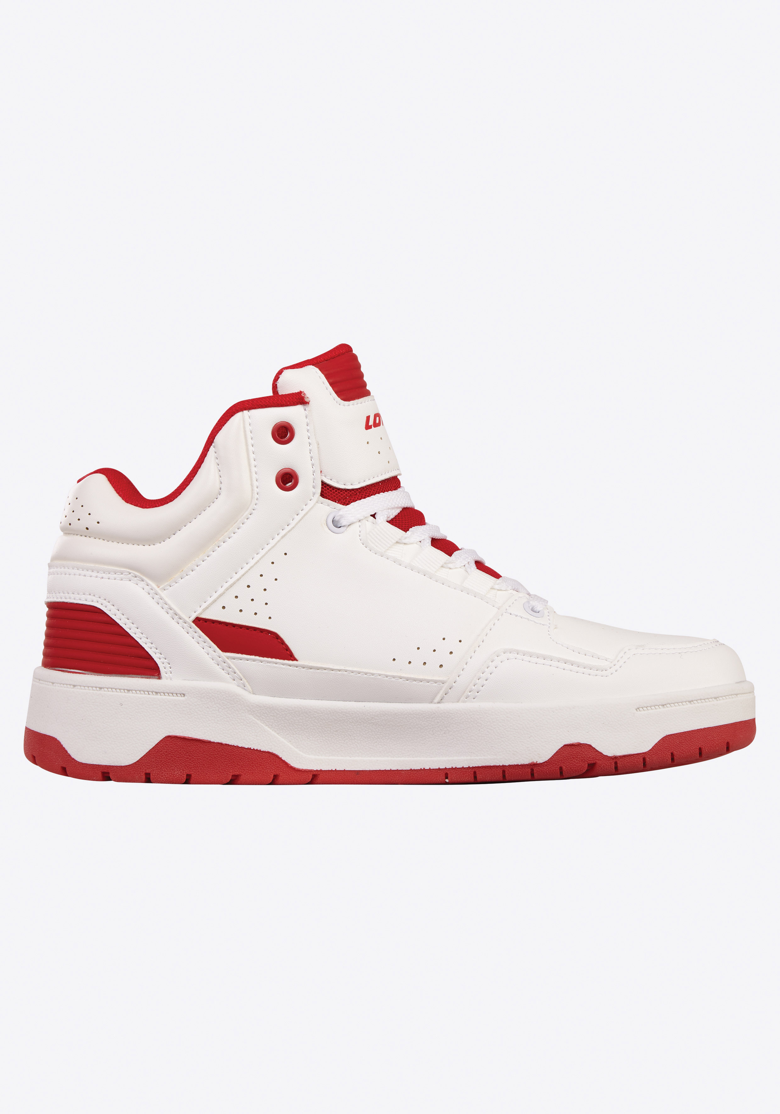 Eine stylische Kombination zu lässigen Streetlooks ist dieser Mid-Cut Sneaker von Lotto im angesagten Basketball Style. Er überzeugt mit farbigen Ösen und weiteren kontrastigen Details in ansprechenden Farbdstellungen. Einen angenehmen Tragekomfort versprechen die weiche Polsterung am Einstieg und die Mesh-Zunge. Die leicht profilierte, mehrfarbige Sohle der Freizeitschuhe trägt nicht nur zum authentischen Streetstyle bei, sondern sorgt auch für mehr Rutschfestigkeit. Passt optimal zu Jeans und Sweatshirt: der Lotto Retro Mid-Cut Sneaker im Basketball Style.