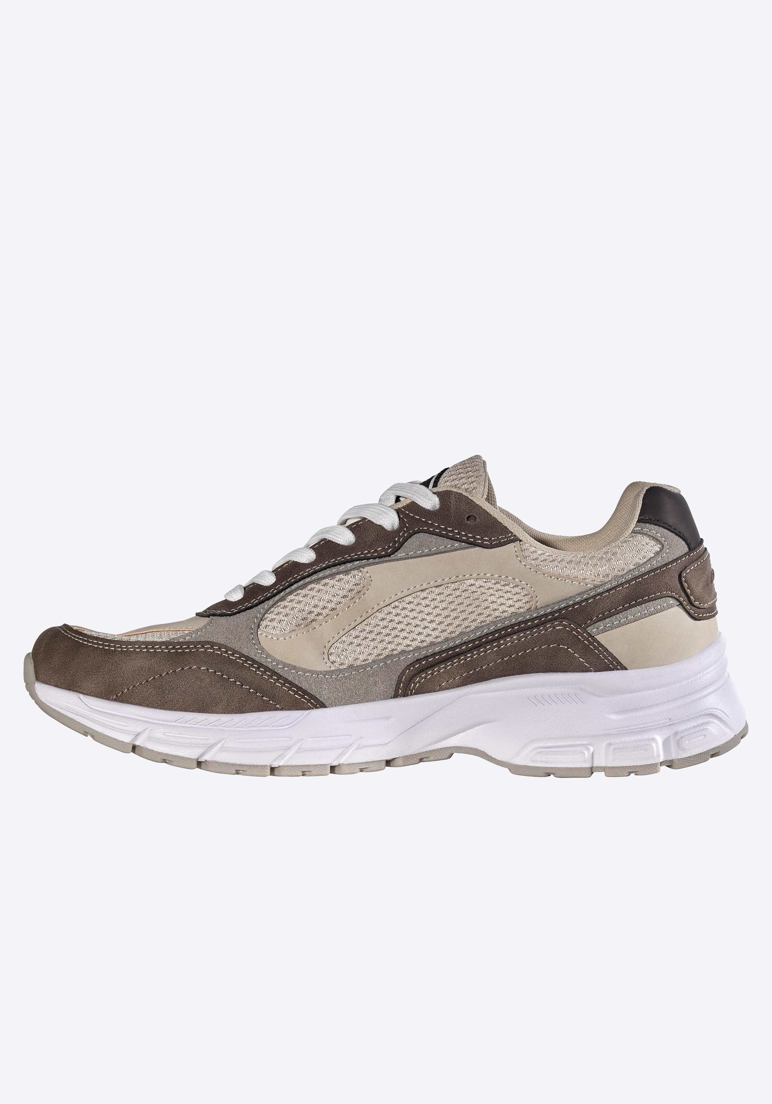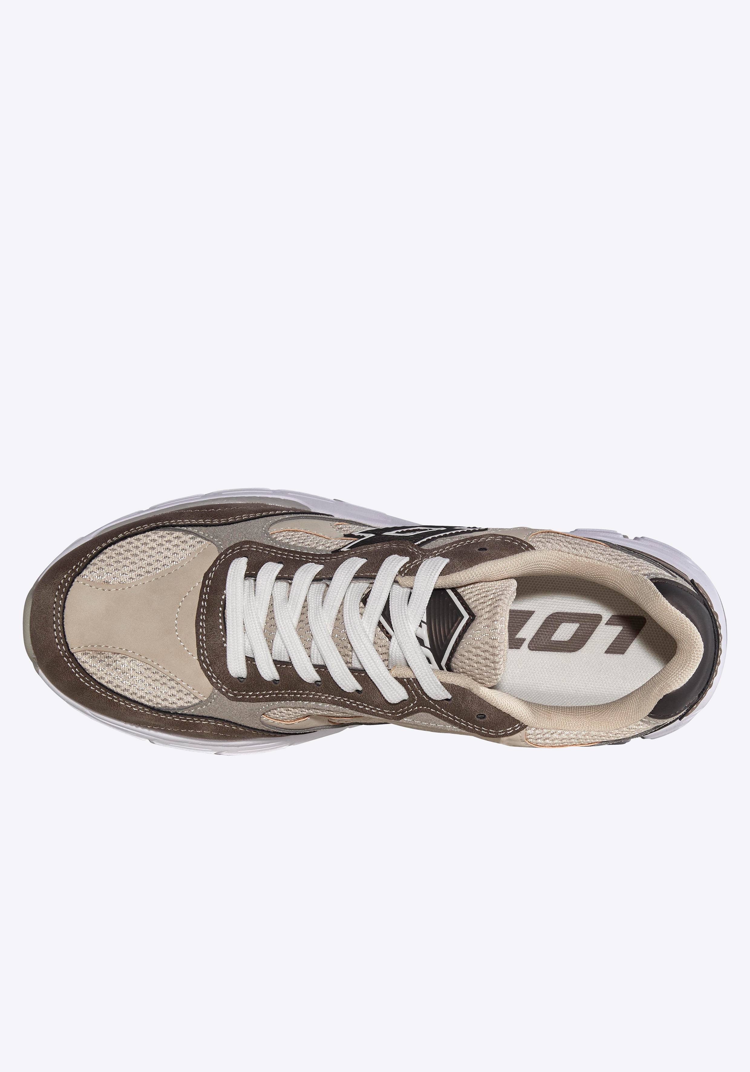 Dieser Sneaker von Lotto vereint sportliche Funktionalität mit einem markanten Retro-Look – und setzt mit seinem aufwendigen, mehrlagigen Design klare Akzente. Geprägte Logos sorgen für hochwertige Markenpräsenz, während die Retrosohle das angesagte Design vergangener Jahrzehnte authentisch aufgreift und mit modernen Elementen neu interpretiert. Die Phylon-Midsole in Kombination mit einer robusten Rubber-Laufsohle garantiert hervorragende Dämpfung bei gleichzeitig geringem Gewicht. Flexkerben in der Sohle unterstützen den natürlichen Bewegungsablauf und sorgen für ein dynamisches, angenehmes Laufgefühl. Zusätzlich wurde ein seitlicher Stabilisator integriert, der den Mittelfuß gezielt entlastet und für extra Halt bei Bewegung sorgt. Abgerundet wird das durch eine zweifach vernähte Toebox, die den Vorderfußbereich verstärkt und den Sneaker besonders strapazierfähig macht. Das Zusammenspiel aus Funktion, Komfort und Design macht diesen Schuh zum perfekten Begleiter für stilbewusste Träger, die Wert auf Technik und Optik legen.