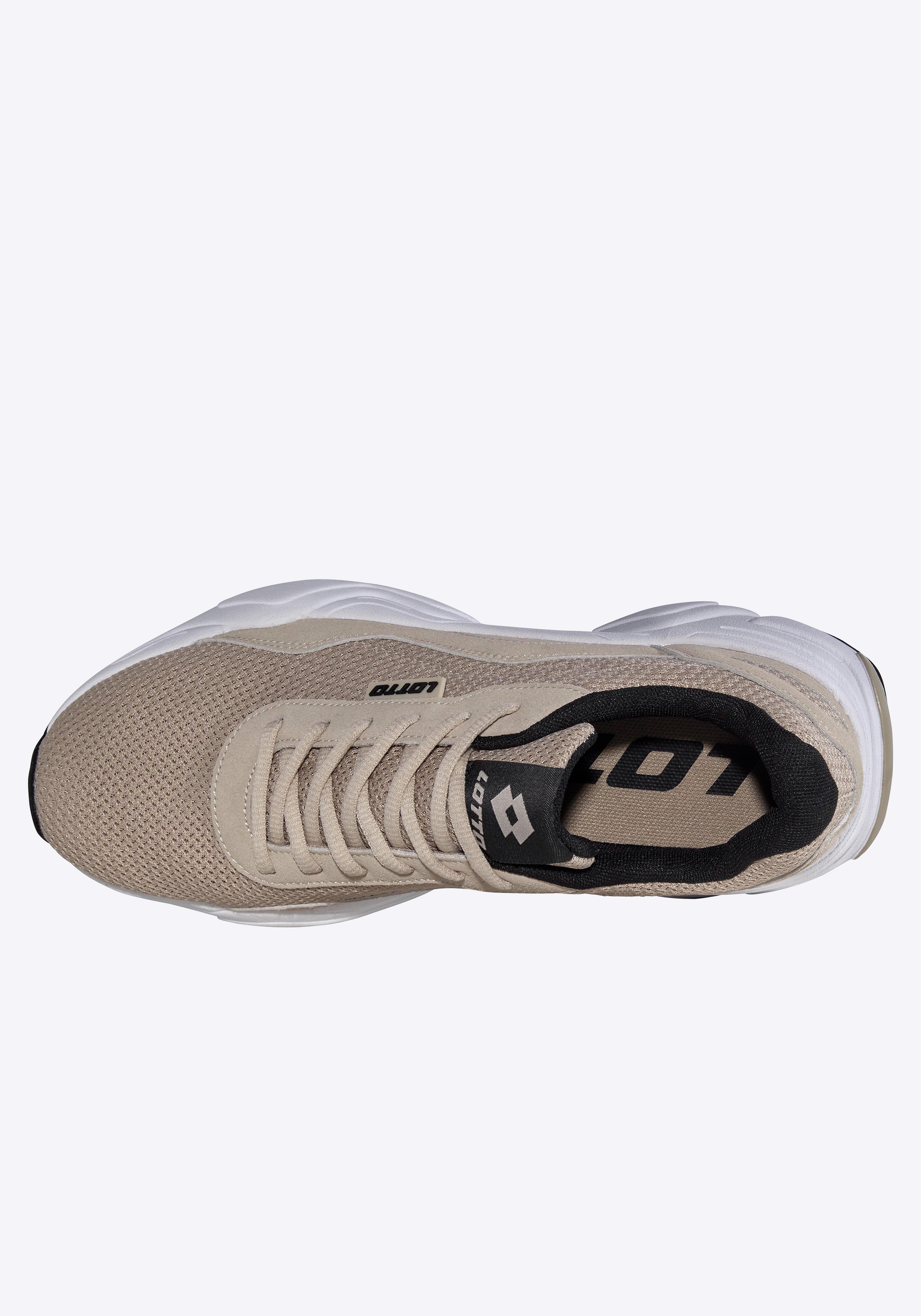 Der Lotto Unisex Chunky Sneaker überzeugt mit einem sportlich-modernen Design und einer komfortablen Ausstattung für den Alltag. Die Kombination aus atmungsaktivem Mesh und markanten Designelementen macht diesen Sneaker zum idealen Begleiter für Freizeit, Urban Styles und aktive Tage. Das hochwertige Mesh-Obermaterial sorgt für optimale Luftzirkulation und ein angenehmes Fußklima. Die gepolsterte Schaftkante sowie das raffinierte Fersendesign mit nach außen umgeschlagenem Futter bieten zusätzlichen Komfort und Stabilität. Ein TPR Flaglabel am Schnürteil setzt einen dezenten, sportlichen Markenakzent. Die trendige Chunky Sohle mit weicher, voluminöser Midsole garantiert eine angenehme Dämpfung bei gleichzeitig geringem Gewicht. Die robuste Gummi-Laufsohle sorgt für hohe Abriebfestigkeit und sicheren Halt im Alltag. Ein kontrastfarbiges Lining, abgestimmt auf die Laufsohle, rundet das Design harmonisch ab.