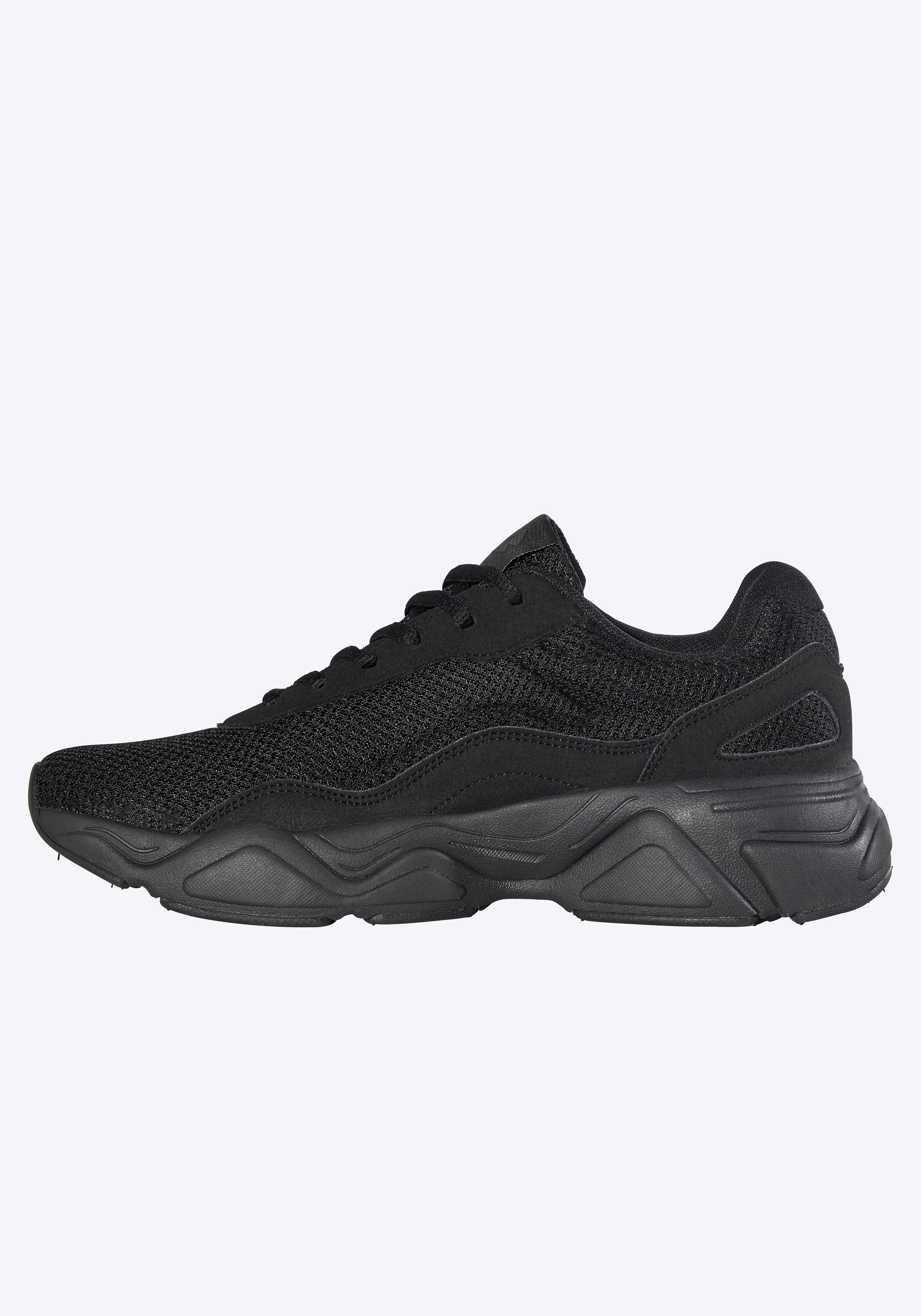 Der Lotto Unisex Chunky Sneaker überzeugt in der cleanen One-Colour-Variante mit einem zeitlosen, minimalistischen Look. Ob ganz in Weiß oder komplett in Schwarz – dieser Sneaker lässt sich vielseitig kombinieren und passt perfekt zu modernen Streetwear- und Casual-Outfits. Das atmungsaktive Mesh-Obermaterial sorgt für ein angenehmes Fußklima und hohen Tragekomfort. Die gepolsterte Schaftkante sowie das raffinierte Fersendesign mit nach außen umgeschlagenem Futter bieten zusätzlichen Halt und Komfort. Dezente Ziernähte und ein zurückhaltendes TPR Flaglabel am Schnürteil unterstreichen den cleanen Look der einfarbigen Ausführung. Die trendige Chunky Sohle mit weicher, voluminöser Midsole bietet optimale Dämpfung bei gleichzeitig geringem Gewicht. Die strapazierfähige Gummi-Laufsohle sorgt für gute Abriebfestigkeit und sicheren Halt im Alltag – ideal für lange Tage auf den Beinen.