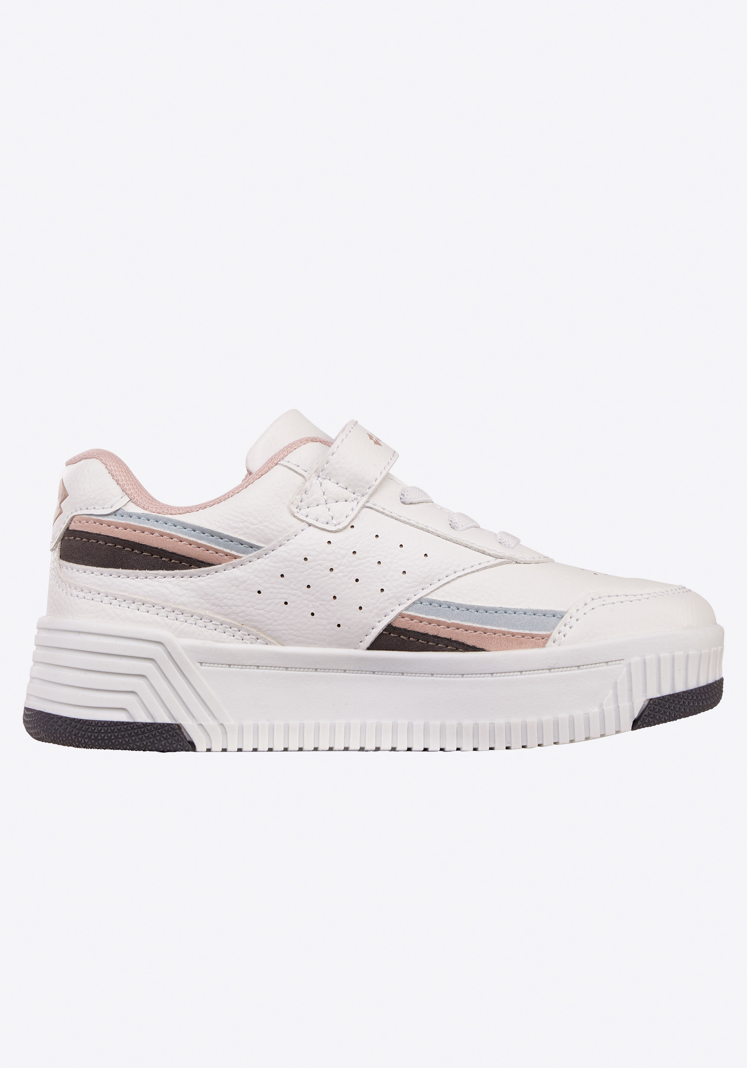 Hüpfen, Rennen, Seilspringen – aktive Kids stellen ihre Schuhe konstant auf die Probe. Dieser Lotto Kindersneaker hält was er verspricht. Dabei ist der sportliche Schuh mit leichtem Plateau modisch voll auf der Höhe und bewährt sich bei allen Abenteuern. Die praktische Kombination aus elastischer Schnürung und Klettverschluss macht das An- & Ausziehen selbst für die Jüngsten erfreulich unkompliziert. On top lässt er sich easy stylen, egal ob zu Jogginghosen oder Jeans. Eltern erfreut, dass der Freizeitschuh auf einem Präzisionsleisten gefertigt wurde, der eine kinderfußgerechte Passform sicherstellt.
