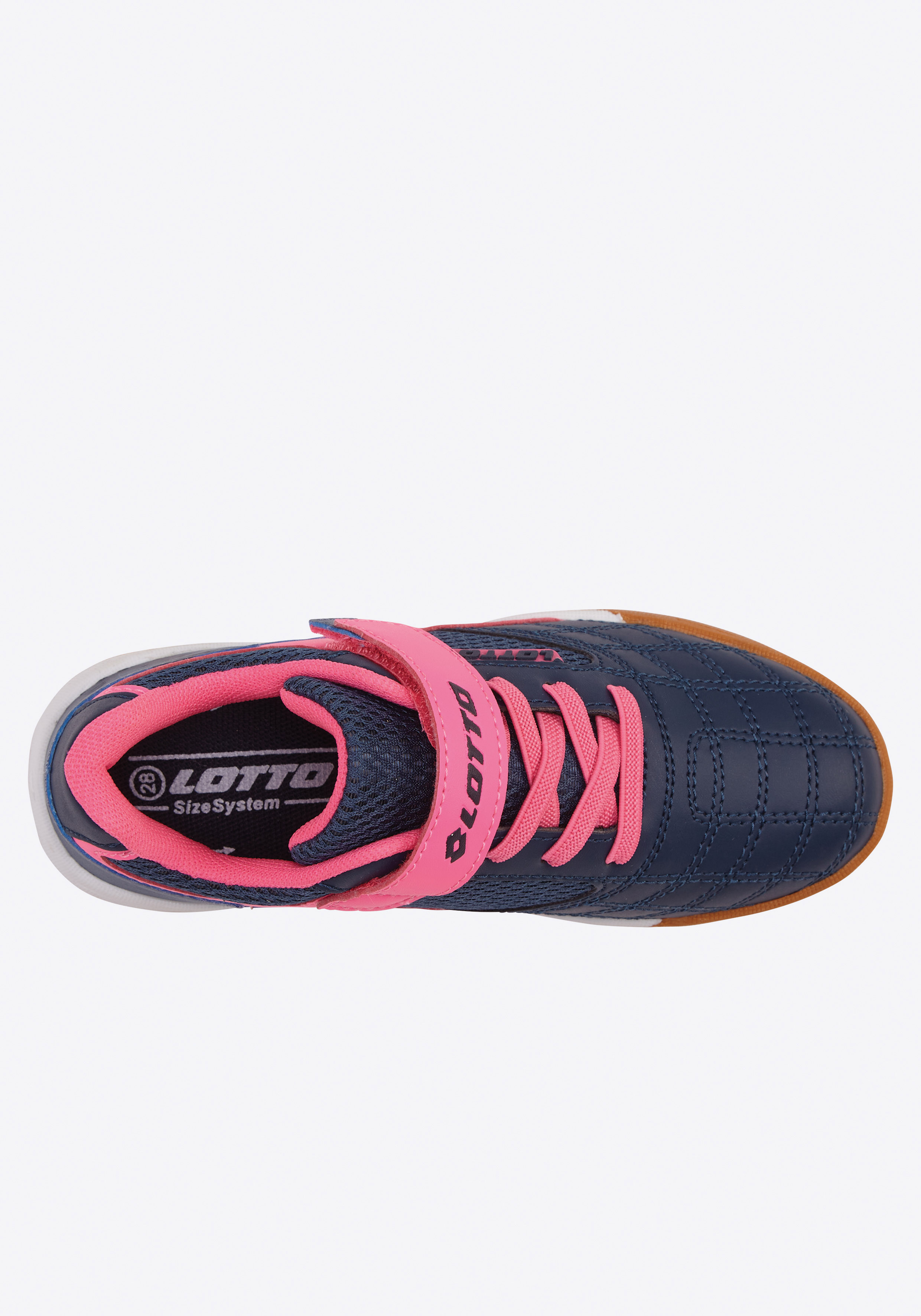 Dieser Sportschuh von Lotto präsentiert sich in einem dynamischen, mehrfarbigen Design mit gestreiftem Logo. Um das Handling so unkompliziert wie möglich zu gestalten, wurde der Kinderschuh mit einer Kombination aus Elastikschnürung und praktischem Klettverschluss ausgestattet. Der Hallenschuh zeichnet sich zudem durch eine kinderfußgerechte Passform aus. Das rutschhemmende Profil der nicht färbenden Laufsohle verleiht Grip bei vielen unterschiedlichen Sportarten. So entpuppt sich der Hallensportschuh von Lotto schnell zu einem unverzichtbaren Begleiter für den (Schul-) Sport!