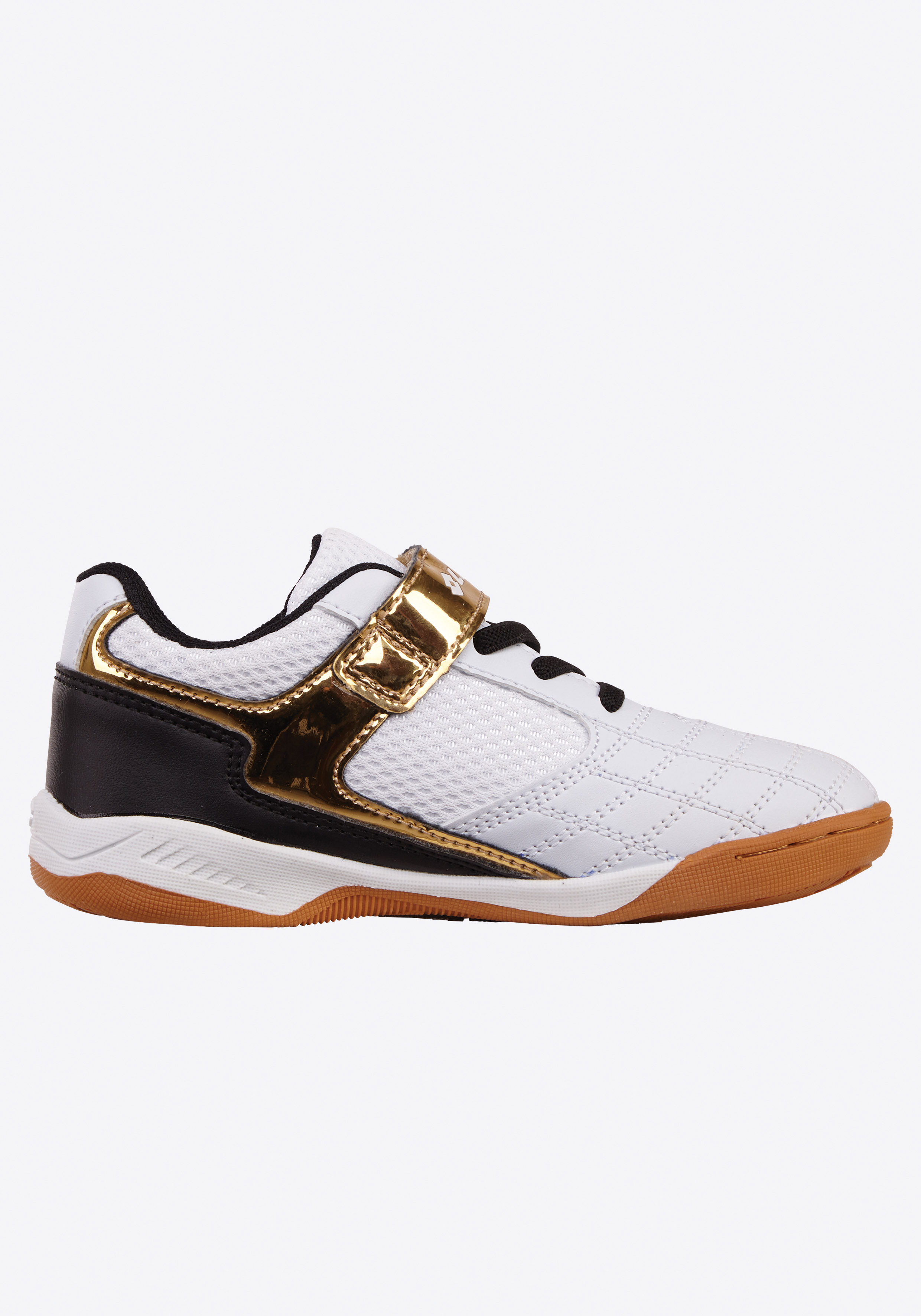 Dieser Sportschuh von Lotto präsentiert sich in einem dynamischen, mehrfarbigen Design mit gestreiftem Logo. Um das Handling so unkompliziert wie möglich zu gestalten, wurde der Kinderschuh mit einer Kombination aus Elastikschnürung und praktischem Klettverschluss ausgestattet. Der Hallenschuh zeichnet sich zudem durch eine kinderfußgerechte Passform aus. Das rutschhemmende Profil der nicht färbenden Laufsohle verleiht Grip bei vielen unterschiedlichen Sportarten. So entpuppt sich der Hallensportschuh von Lotto schnell zu einem unverzichtbaren Begleiter für den (Schul-) Sport!