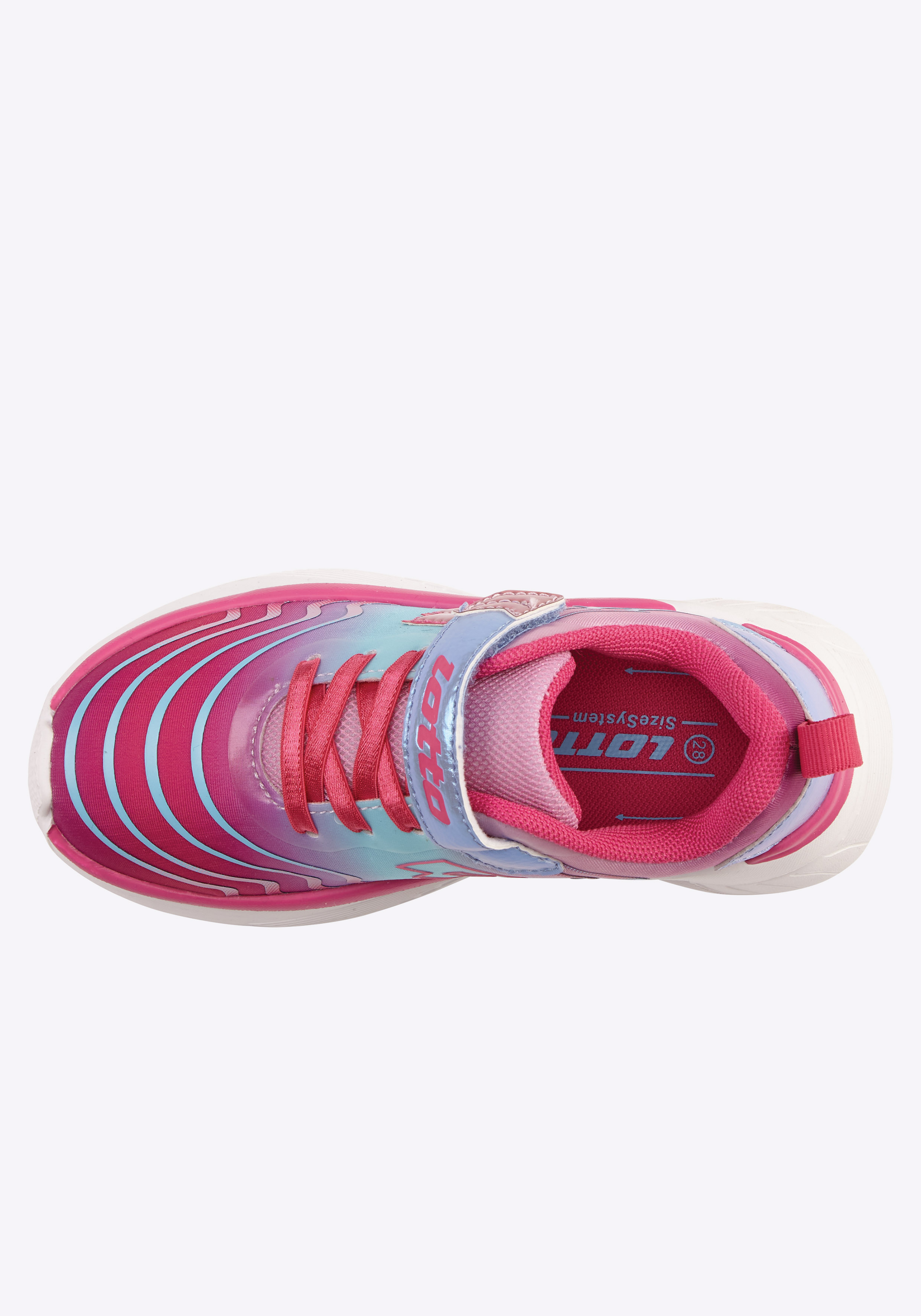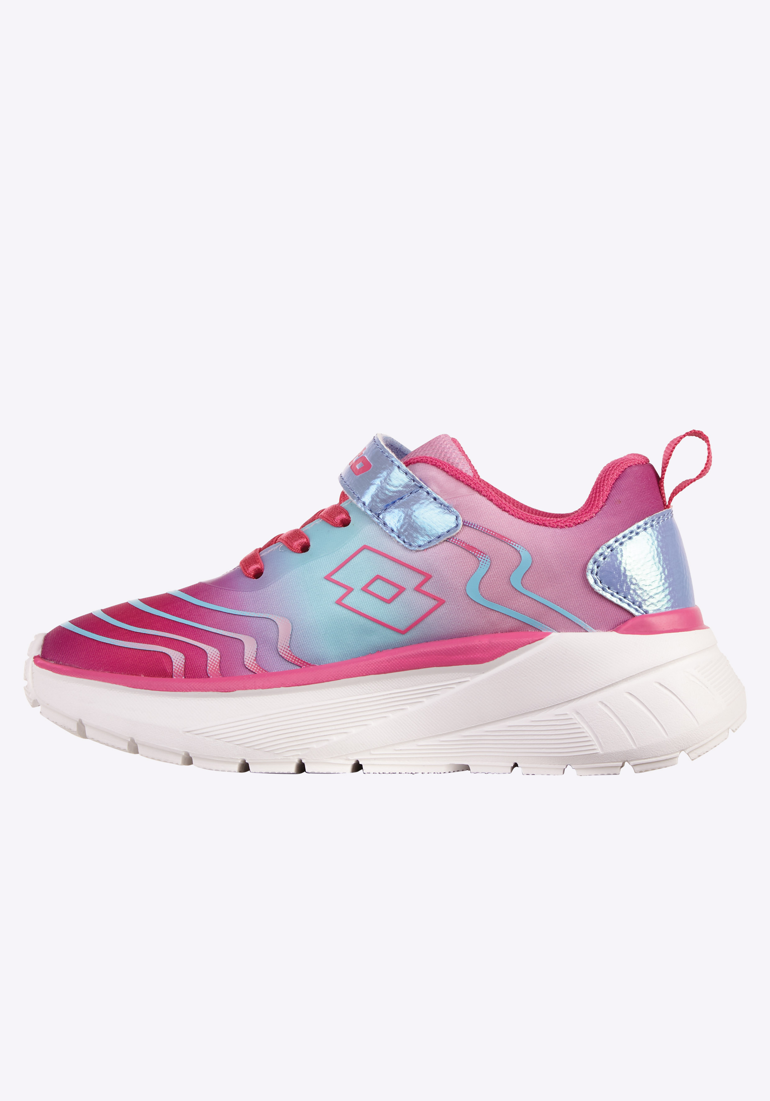 Spaß und Sport mit dem modischen Mädchensneaker von Lotto. Dieses Design mit tollem Farbverlauf verfügt über eine Meshzunge für angenehmen Trage-Komfort und ein Fersenband. Die praktische Kombination aus elastischer Schnürung in Satin-Optik und Klettverschluss macht das An- & Ausziehen selbst für die Jüngsten erfreulich unkompliziert. Der Schuh ist außerdem herrlich bequem und zeichnet sich durch eine tolle kindgerechte Passform aus.