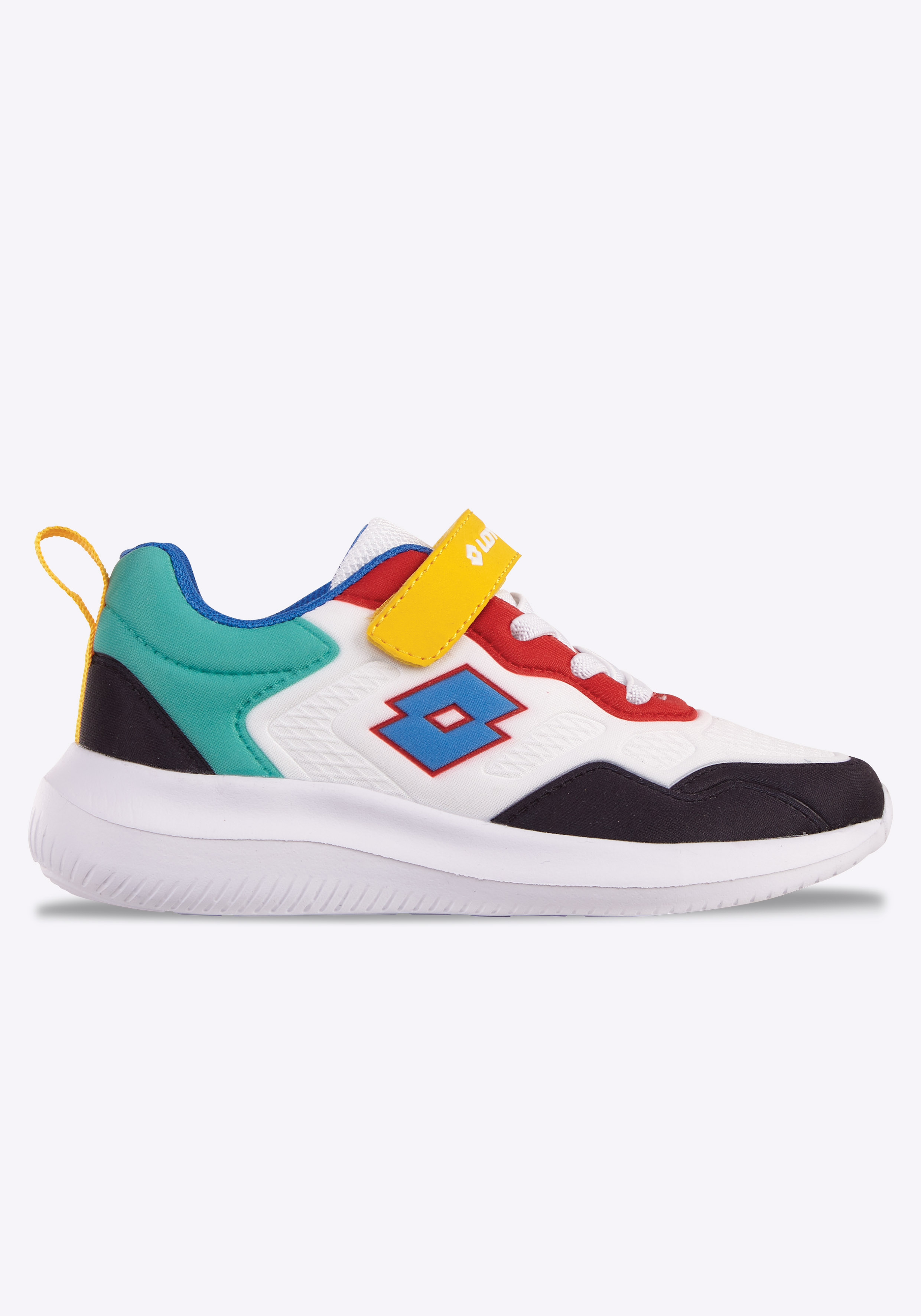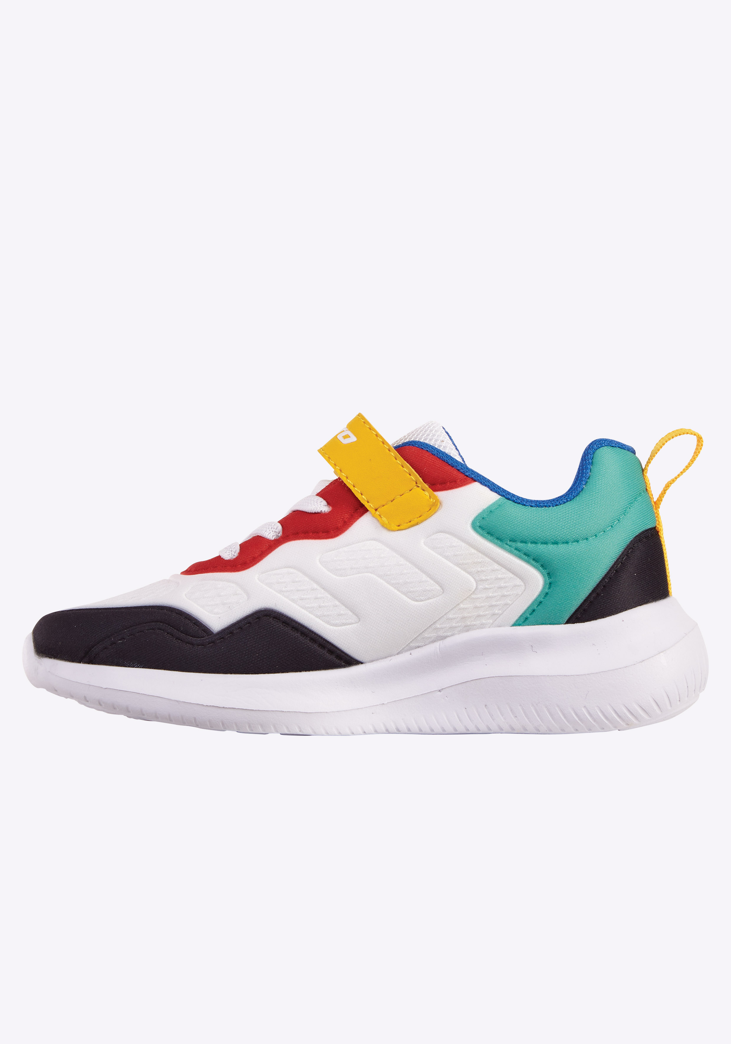 Mit seinem lebendigen, farbenfrohen Design begeistert dieser modische Sneaker von Lotto kleine Trendsetter! Neben seinem coolen Look überzeugt der Kinderschuh allem voran mit einer kinderfußgerechten Passform. Eine praktische Kombination aus Klettverschluss und Elastikschnürung sorgt für ein einfaches An- und Ausziehen – ideal um Kinder in ihrer Selbstständigkeit zu begleiten. Die sportlichen Freizeitschuhe passen hervorragend zu Jeans und angesagten Printshirts. Ob beim Spielen im Garten, beim Stadtbummel oder auf dem Pausenhof – mit diesen Sneakers sind Kinder von Lotto immer bestens ausgestattet.