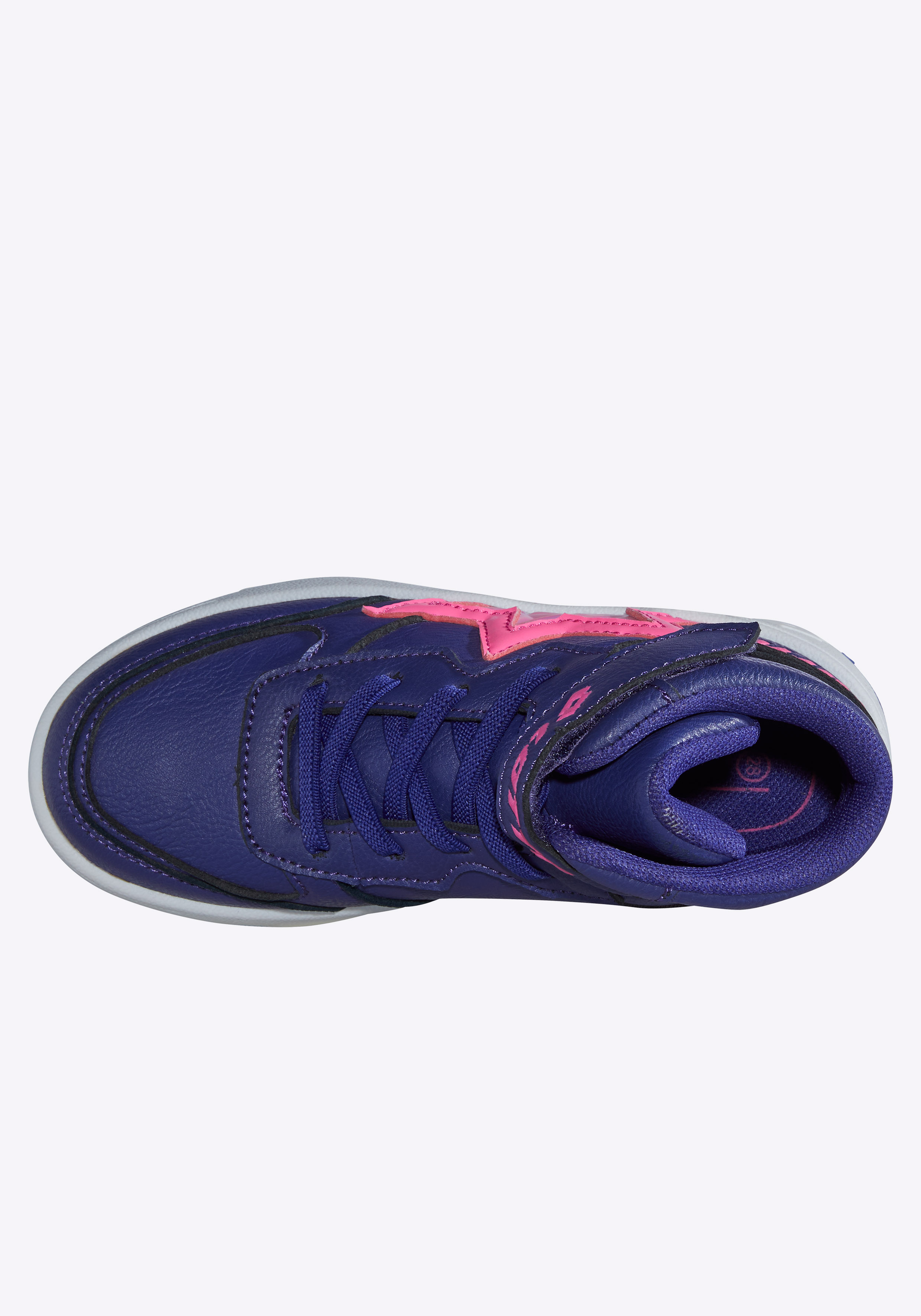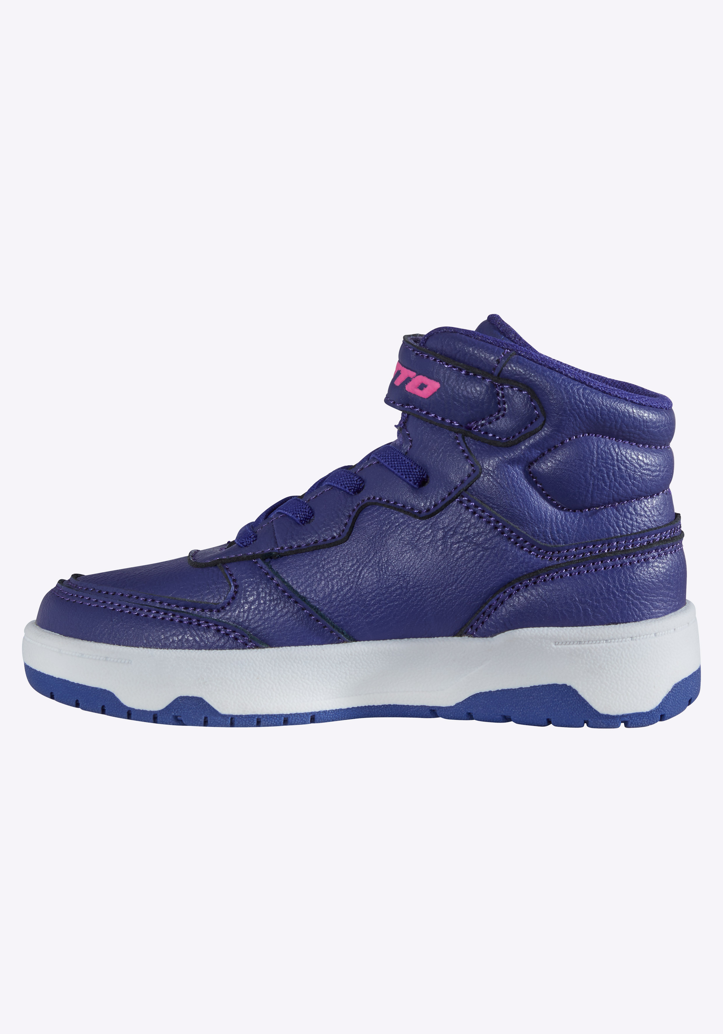 Mit diesem Sneaker im Mid-Cut-Design bringt Lotto den coolen 80er-Jahre Basketball-Style in den Alltag – kombiniert mit einem Hauch Glitzer und jeder Menge Komfort. Ein funkelnder Glitzerstern an der Seite verleiht dem Schuh einen mädchenhaften Touch, der sofort ins Auge fällt. Der höhere Schaft bietet zusätzlichen Halt und liegt voll im Trend. Ideal für sportliche Abenteuer und stylische Alltagslooks. Die elastische Schnürung mit praktischem Klettverschluss sorgt für kinderleichtes Anziehen und sicheren Sitz. Für extra Strapazierfähigkeit ist die Zehkappe zweifach vernäht. Ein integrierter Drehpunkt in der Sohle unterstützt schnelle Bewegungen und Richtungswechsel, während das bewährte Lotto Größensystem eine fußgerechte Passform gewährleistet – ideal für wachsende Kinderfüße.